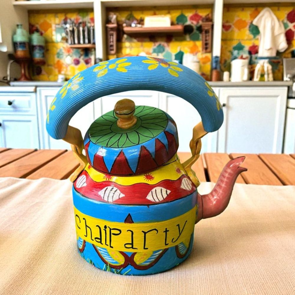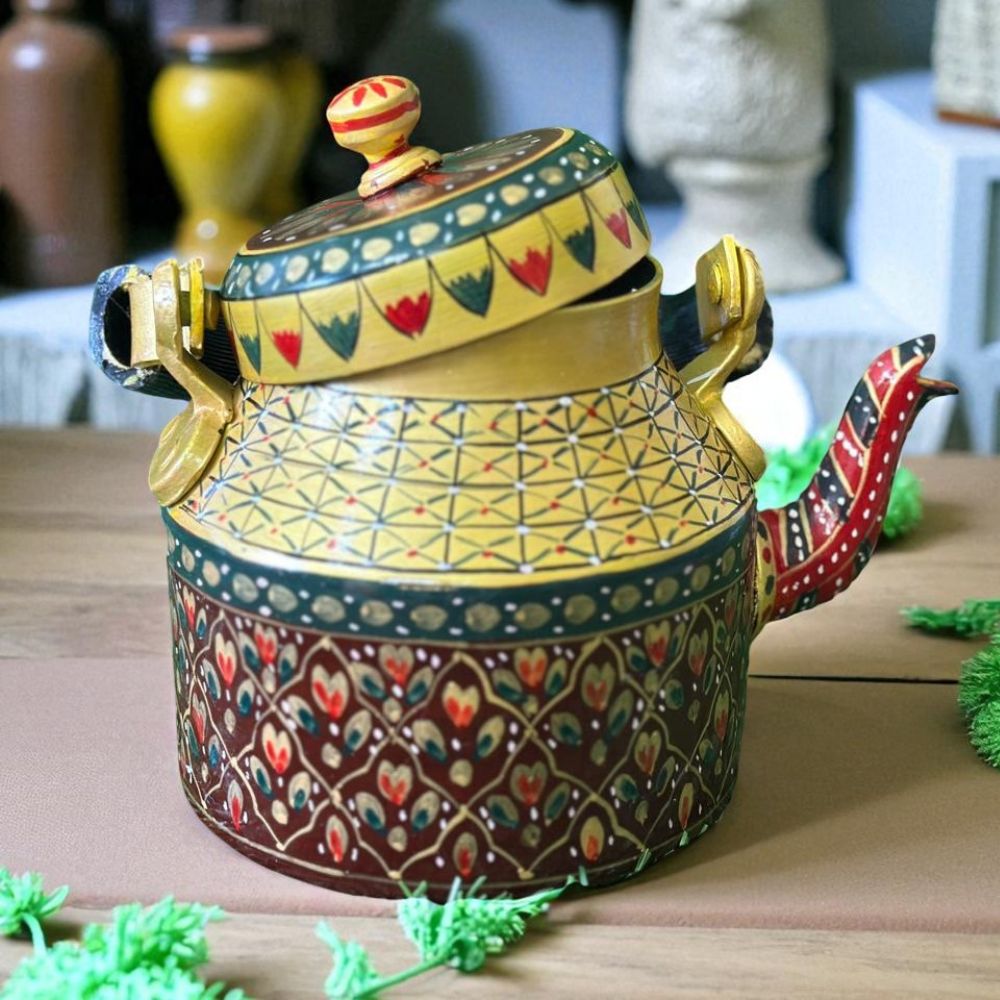 Painted Tea Kettle Designer Chai Ketli (1 L) – Handmade Aluminium Chai Pot for Kitchen, Gifting & Festival Décor